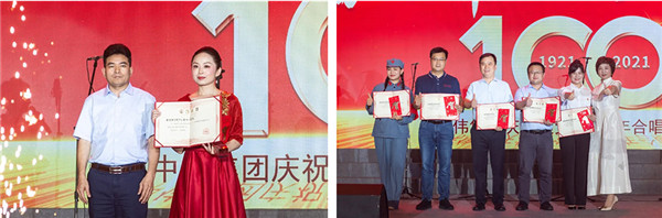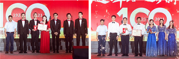 The event also held a "Vanguard of Party Members" award ceremony, 10 party members from the group won the honor, and then reviewed the pledge of party membership with other party members representatives. The oath was heard, and the bright red party flag was waving on the stage. At the end of the evening party, the audience stood up and sang "Without the Communist Party, there would be no New China", to prolonged applause.