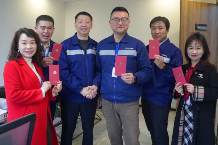 金龍迎新,開工大吉!正月初九,中偉股份各中心、各基地、各部門喜迎龍年開工第一天!一個個寓意著新年美好祝福的開工紅包發(fā)放到了每一位員工手中,預(yù)示著新的一年紅紅火火,萬事興“龍”!