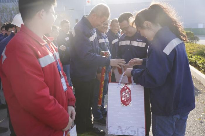 正月初九,值此開門見喜之際,中偉欽州產(chǎn)業(yè)基地總經(jīng)理胡培紅為基地2000余名員工送上開工紅包。在分享新春彩頭、開工祝福的同時,胡培紅鼓勵廣大員工將春節(jié)的喜悅和活力化為工作的動力,以開局就是決戰(zhàn)、起步就要沖刺的勁頭,實干實干再實干,創(chuàng)造創(chuàng)造再創(chuàng)造,確保各項工作取得“開門紅”,年度業(yè)績創(chuàng)新高。