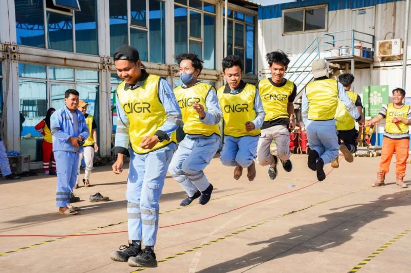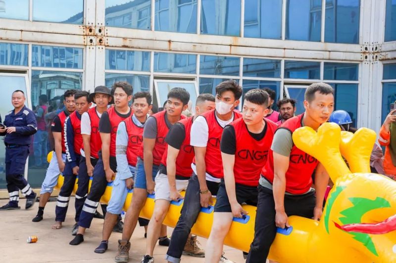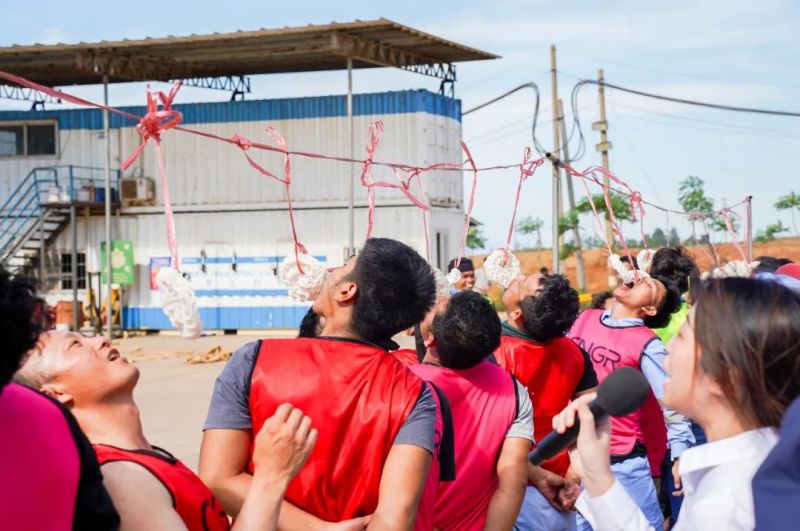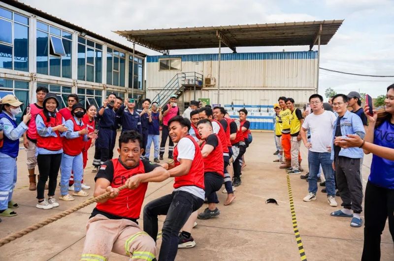 旱地龍舟賽跑、集體跳繩、拔河比賽等團體項目將活動推向了高潮,中印尼員工現(xiàn)場抽簽臨時組隊,相互配合共同完成挑戰(zhàn),參賽選手肩并肩,手挽手,擰成一股繩,現(xiàn)場觀眾熱情如火,助威聲此起彼伏,團隊游戲的火熱氛圍將現(xiàn)場的每一個人都聯(lián)結(jié)在了一起。