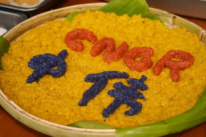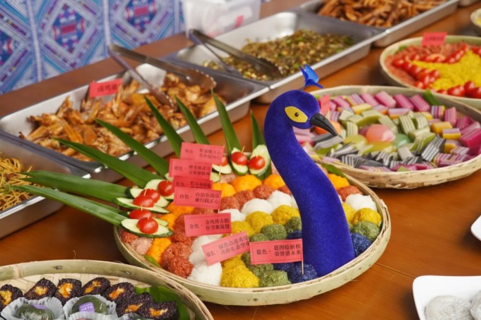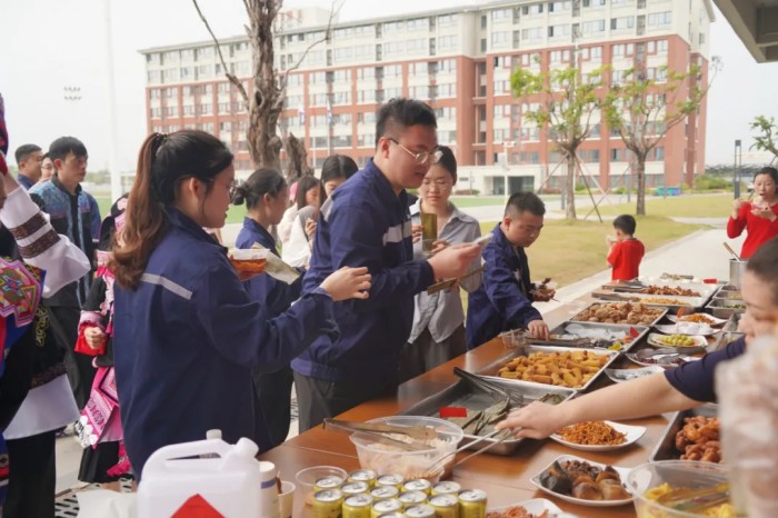 活動現場不僅是歌聲的海洋、舞蹈的世界,更是美食的天堂。椰汁千層糕、彩色糯米飯、白薯籺、酸嘢等20類廣西特色小吃琳瑯滿目,讓人垂涎欲滴。中偉欽州產業基地總經理焦華等領導也一同參與活動,大家發揮無限想象力和創造力,把糯米飯擺成“CNGR中偉”的形狀,用七色糯米飯裝點中國大區“黨工團婦七色活動精神”,以別出心裁的方式,引導廣大員工堅決貫徹落實好企業文化和活動精神,堅持以飽滿熱情、昂揚斗志打贏生產經營攻堅戰。