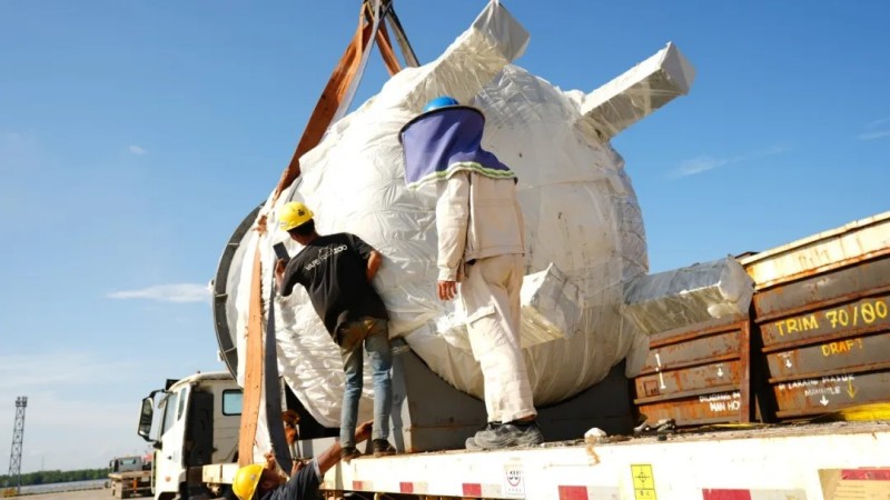 此次隨船抵港的首批設備涵蓋10類生產核心裝備,均為公司最為先進的三元前驅體生產線重要組成部件。項目自2025年2月開建,便以“中偉速度”按既定時間表高效推進,至今已完成主體搭建,后續批次設備計劃于7月底至8月初陸續到港,全力保障2025年底實現投產運營。