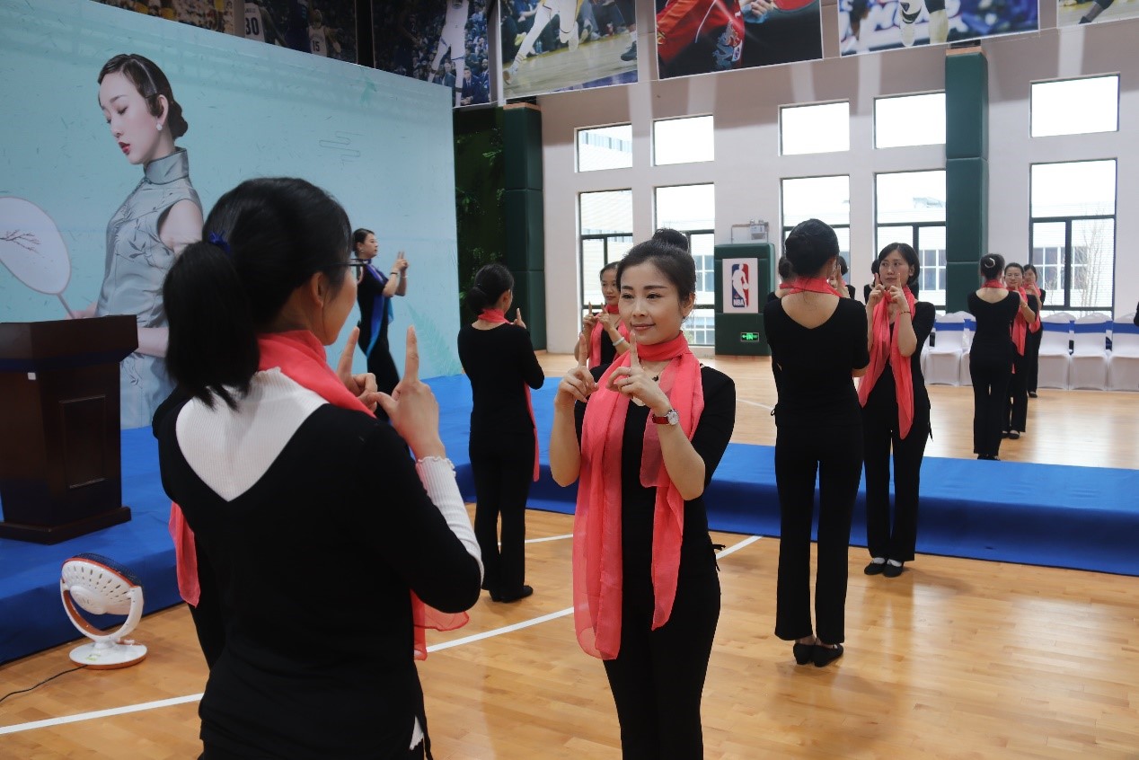 吳小歌女士與中偉女員工一同參與儀態(tài)訓(xùn)練