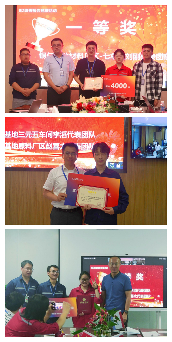 通過4個小時的激烈競爭,以及評委老師們的專業點評和公正打分,最終,來自銅仁產業基地材料廠區七車間劉剛團隊以縝密的邏輯、精彩的演講和應用改善效果摘得桂冠,欽州產業基地三元五車間李滔團隊和寧鄉產業基地原料廠區趙喜太團隊并列第二,寧鄉產業基地三元一車間王小能團隊、四鈷一車間姜建明團隊,銅仁產業基地材料廠區三車間樊正旺團隊、材料廠區設備部胡波團隊獲得并列第三。